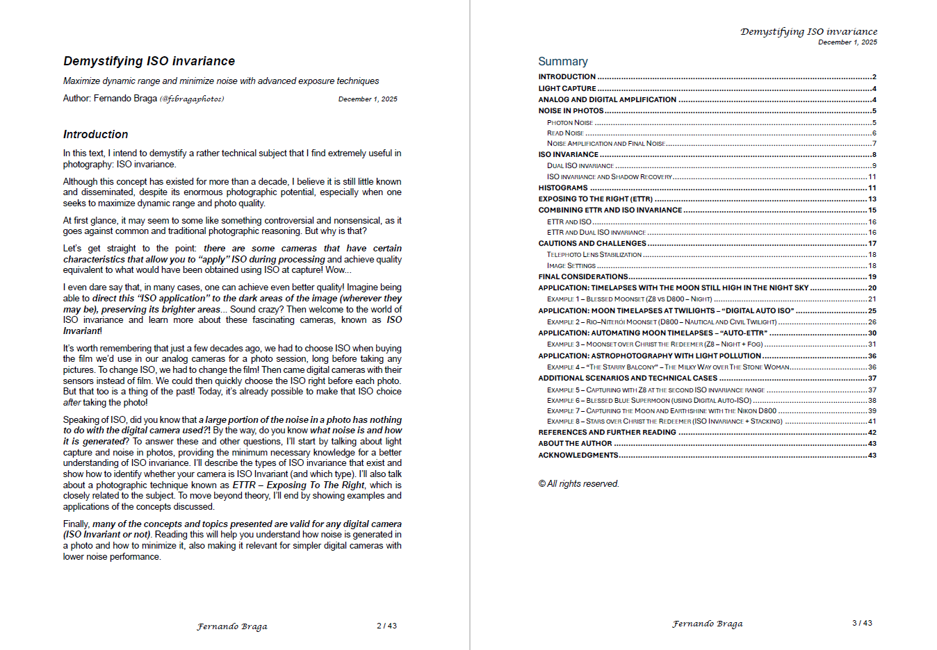 ISO invariance is one of the most misunderstood — and underused — concepts in digital photography. In this highly technical yet accessible article, the author breaks down the theory behind ISO invariance, read noise, photon noise, and the ETTR (Exposing To The Right) technique, revealing how digital amplification can be used strategically to maximize image quality and dynamic range.